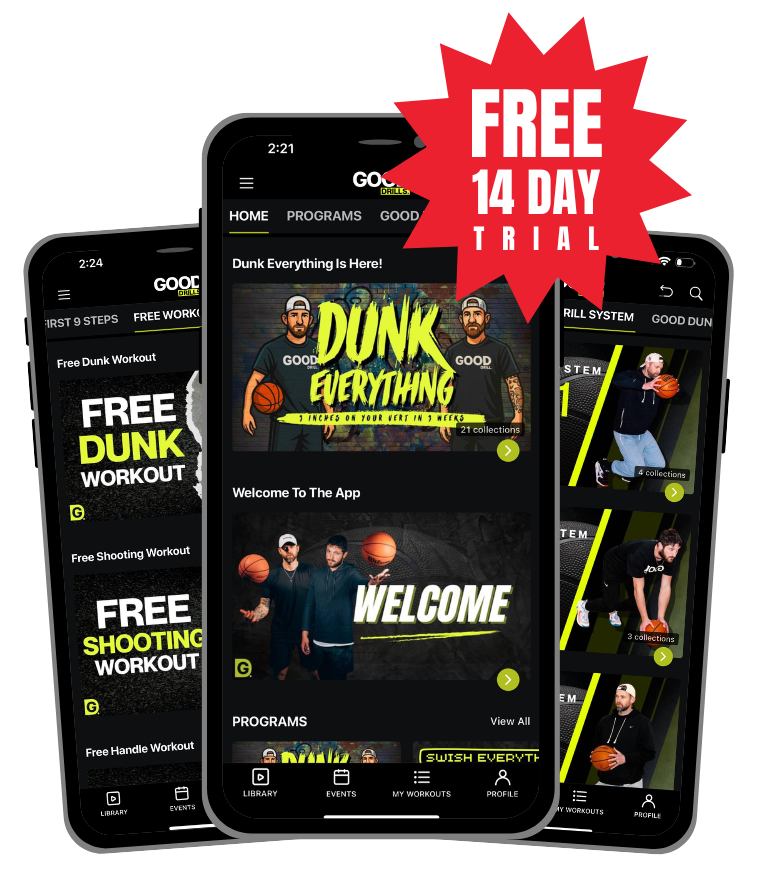 Unlock everything we have inside the Good Drills App for FREE for 14 DAYS. Everything you need to jump higher, score more, move better, get stronger and dominate the game.