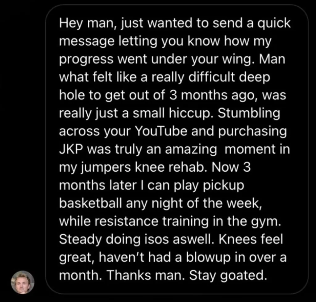 Good Knees is a step-by-step rehab plan designed to get you back to playing, moving and jumping without pain as fast as possible.
